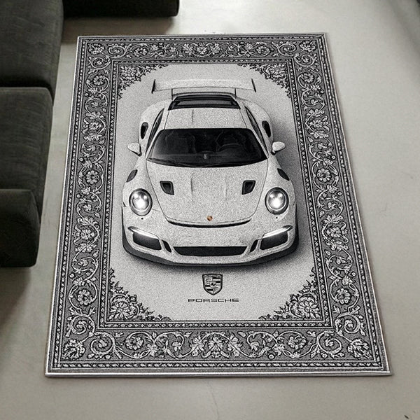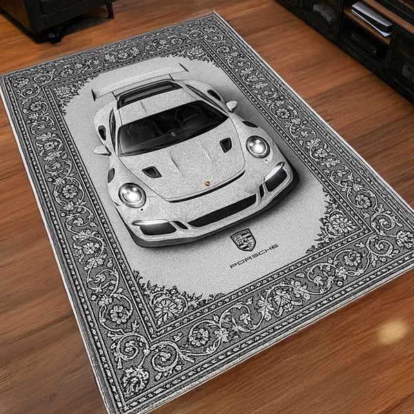 Crafted for true automotive enthusiasts, this premium rug captures the spirit of performance and timeless design.